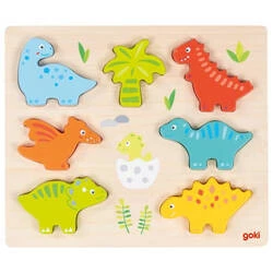 Drewniana układanka dla dzieci kolory i kształty figurki Dinozaury Goki 57360