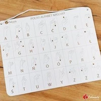 Drewniana tabliczka z polskim alfabetem migowym do zawieszenia