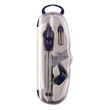 Zawiera: cyrkiel z wymiennym uchwytem na ołówek oraz zapasowe rysiki.