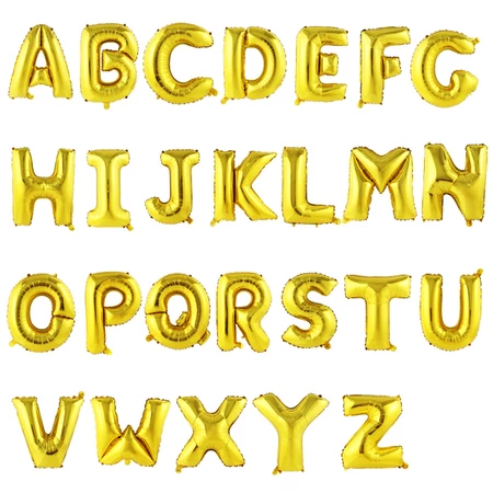 - Balon foliowy metalizowany litera, w kolorze złotym. Rozmiar 32 cale. Cena za sztukę.