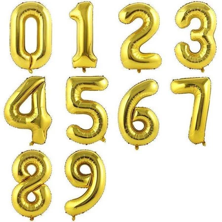 - Balon foliowy CYFRA w kolorze złotym, wysokość ok. 85 cm (40")