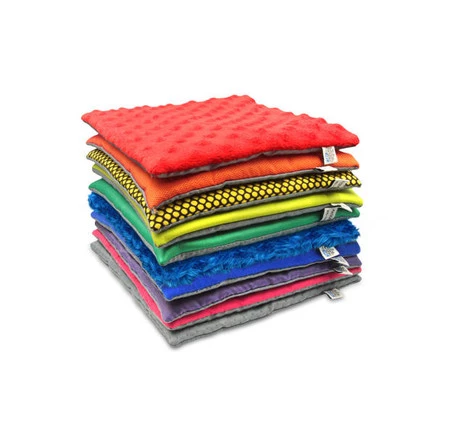 - Zestaw 10 materiałowych paneli o wymiarach 20x20 cm do stworzenia ścieżki sensorycznej.