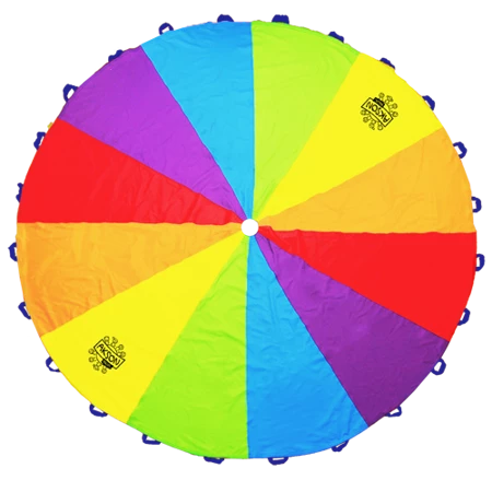 • Spadochron animacyjny o średnicy 3 m w kolorach tęczy z 24 uchwytami. Spadochron Animacyjny AKSON - alternatywa dla Profesjonalnej Chusty Animacyjnej.