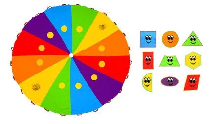 - Zestaw Chusta edukacyjna Akson duże koła + 9 dodatków edukacyjnychKSZTAŁTY. Średnica 3m wzmacnianą taśmą i 24 uchwytami, rzepy: 9 szt (koło, kwadrat, prostokąt, trójkąt, owal, romb, trapez, sześciokąt, półkole), praktyczny, kolorowy pokrowiec z uchwytem