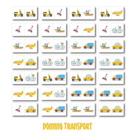 - Gra Domino XXL - Transport to zabawa, która pozwala ćwiczyć spostrzegawczość, refleks oraz umiejętność logicznego myślenia, rozwija koordynację wzrokowo- ruchową oraz umiejętność koncentracji. Zestaw zawiera 28 elementów o wymiarach 18 x 36 cm.