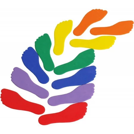 - Gumowe znaczniki na podłogę w kształcie stopy. Można je wykorzystać do wszelkiego rodzaju gier, zabaw edukacyjno-ruchowych, w terapii sensorycznej.