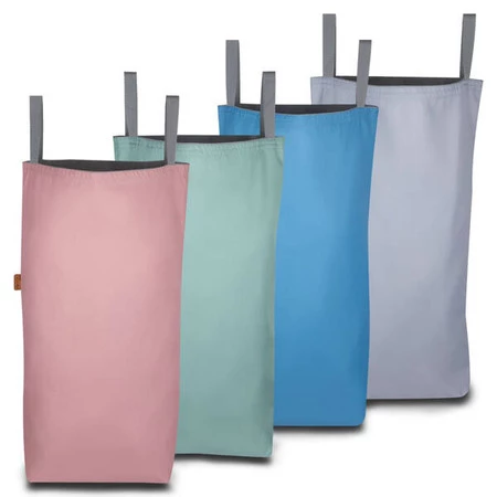- Zestaw 4 worków do skakania w pastelowych kolorach: różowym, zielonym, niebieskim i szarym.