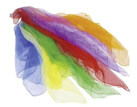 - Tęczowy zestaw kolorowych oraz zwiewnych chust przydatnych podczas nauki żonglowania, zabaw artystycznych oraz tanecznych.