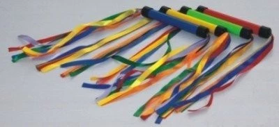 - Dwustronna różdżka gimnastyczna ze wstążkami. Komplet 12 sztuk.