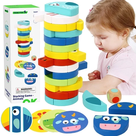 Jenga Zwierzęta od marki TOOKY TOY to gra zręcznościowa dla dzieci od 3 roku życia. Wymaga od naszej pociechy skupienia i logicznego myślenia. W zestawie znajduje się klocki przedstawiające różne zwierzęta, karty ze zwierzęciem oraz kostka. Po wylosowaniu koloru i odpowiedniego zwierzęcia z karty, dziecko musi wyciągnąć jeden z klocków z właściwego miejsca. Celem gry jest, aby wyjąć jak najwięcej klocków bez zburzenia wieży. Produkt ekologiczny w 100% bezpieczny dla środowiska oraz naszego malucha. Elementy zostały wykonane z myślą o małych rączkach dziecka. Zestaw przyciąga wzrok żywymi kolorami oraz ilustracjami zwierząt. Klocki charakteryzują się solidnym wykonaniem. Gra Jenga mimo swojej prostoty na pewno dostarczy fantastycznych wrażeń dla dziecka i jego przyjaciół!