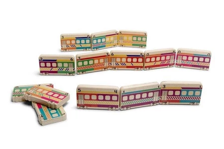 Popularna gra domino w wersji łączenia na conajmniej 5 sposobów. Zadaniem graczy jest łączenie ze sobą drewnianych wagoników kolorem wagonu, kolorem paska, liczbą okienek, cyfrą, znaczkiem. Wagoniki możemy postawić lub położyć. Są one pomalowe dwustronnie co dodatkowo wzbogaca możliwości rozwiązań. Gra rozwija wyobraźnię i logiczne myślenie. Polecamy!