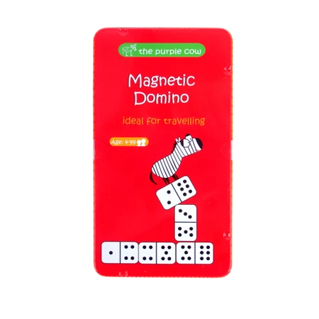 Magnetyczna gra Domino to ciekawa propozycja dla osób, które dużo podróżują. Seria mini gier magnetycznych the purple cow zmieści się do każdej torebki. Gra mało waży, dzięki czemu zawsze możemy ją mieć pod ręką. Sprawdzi się podczas czekania na wizytę u lekarza, w dłuższej podróży samochodem czy samolotem. Metalowe pudełko służy nam za planszę, dzięki czemu gabaryt gry ograniczony jest do minimum.