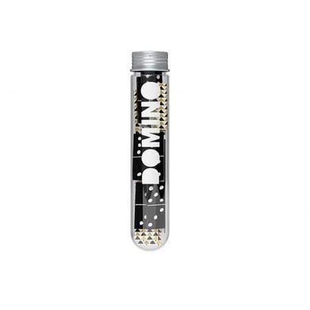 • W wyjątkowym, nietypowym opakowaniu - zakręcanej mini menzurce, znajduje się 28 elementów karteczek do zabawy w grę domino.