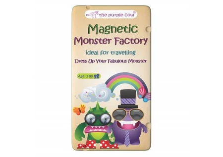 Stwórz swojego potworka z grą magnetyczną The Purple Cow. Fabryka potworów to świetny zestaw magnesów do ubierania dziwadeł. Do wyboru są elementy strojów, ciała oraz inne akcesoria. W wersji magnetycznej świetnie sprawdzi się w podróży. Magnetyczne elementy nie pogubią się, w każdej chwili można wrócić do gry. Całość zapakowana jest w poręczne, metalowe pudełko.