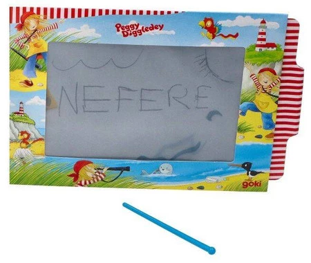 Wysunięcie tekturowej wkładki zmazuje wszystko i zabawę można zaczynać od nowa.