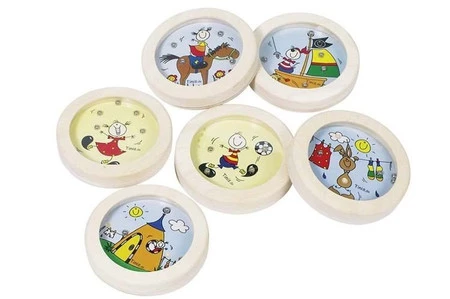 Niewielka zabawka zręcznościowa marki Goki, którą dziecko zmieści w kieszeni i będzie miało ją pod ręką, gdy nadejdzie nuda. Poruszając pojemnikiem należy trafić kulkami do dziurek.