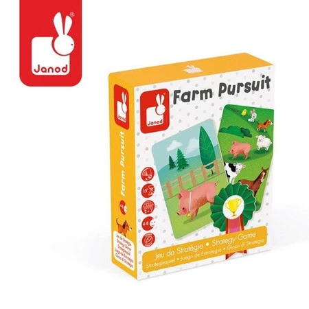 Gra strategiczna Wyścig na farmie francuskiej marki JANOD to wspaniała zabawa dla dwóch do siedmiu osób – zarówno dzieci, jak i dorosłych. Zestaw zawiera 56 kart, które przedstawiają różne gatunki zwierząt, obecnych na farmie: robaka, pisklę, królika, psa, owcę, świnię, krowę i konia. Zwierzęta te należy ułożyć od najmniejszego do największego tak, by w każdej rundzie pozbyć się jak największej ilości kart. Osoba, która wygra rundę – otrzymuje kotylion. Całą grę wygrywa ten, kto zdobędzie więcej kotylionów.