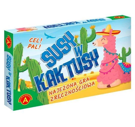 SUSY W KAKTUSY to dynamiczna gra zręcznościowa dla całej rodziny. W pudełku znajdują się katapulty i specjalna tarcza przypominająca kaktusowe pole. Gracze strzelają do niej kolorowymi czapeczkami. Zdobycie punktów nie jest jednak wcale proste. Trzeba precyzyjnie oceniać odległości i umiejętnie dobierać siłę nacisku, tak by trafiać w najwyżej punktowane pola między kaktusami. Wygrywa ta osoba, która zdobędzie największą ilość punktów.