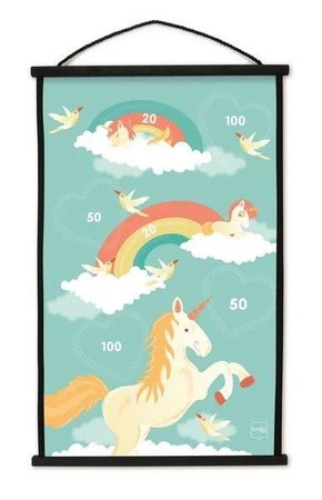 START TO DART _Jednorożec - dwustronna tarcza z rzutkami z motywem Jednorożca. START TO DART - to bezpieczna zabawa dla młodszych wielbicieli rzutek. Gra polega na jak najbardziej precyzyjnym trafieniu rzutkami w tarczę, gdzie rozmieszczono punkty za każdy oddany rzut. Tarcza jest dwustronna co pozwala na zabawę na dwa różne sposoby. Do tarczy dołączono 6 sztuk bezpiecznych rzutek z gumową przyssawką. Dzięki temu rzutki mają odpowiednie wykończenie bezpieczne dla młodszych dzieci, które rozpoczynają zabawę w popularną grę w dart. Dart to znana i lubiana gra, która rozwija zręczność i koordynację ruchowo-wzrokową u dzieci.