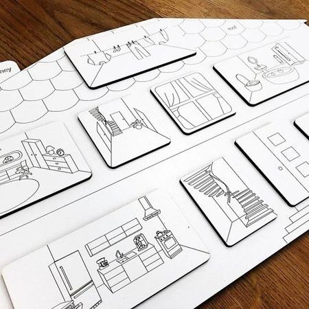 - Drewniana układanka House do nauki słownictwa w języku angielskim.