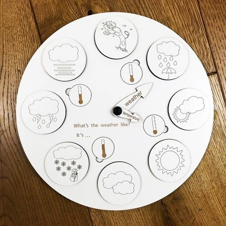 Czytaj więcejZegar pogodowy w języku angielskim, który może służyć do nauki przez zabawę zjawisk pogodowych oraz języka angielskiego.