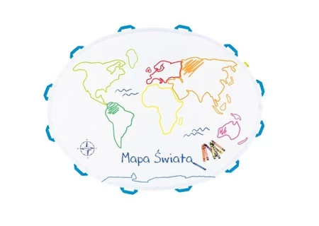- Kreatywna chusta edukacyjna Mapa Świata AKSON (do malowania) W zestawie ze spieralnymi kredkami.
