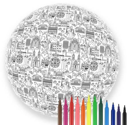 Piłka balonowa do kolorowania XXL o średnicy 85 cm ze zdejmowanym pokrowcem z serii "Miasta"