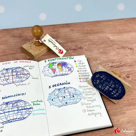 - Stempel do nauki kontynentów, oceanów, półkul i równoleżników.
