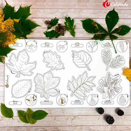 Dzięki tablicy edukacyjnej - liście i owoce drzew dziecko poznaje:
