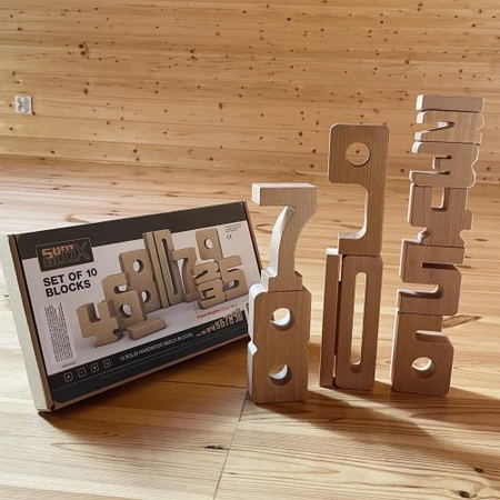 SumBlox to nie tylko narzędzie stricte matematyczne. Ich piękny design w kształcie cyfr i solidne wykonanie z litego drewna bukowego sprawiają, że są one również fantastycznym materiałem do swobodnej, kreatywnej zabawy. Budowanie z nich wież, konstrukcji czy po prostu manipulowanie elementami w rękach w naturalny sposób wspiera:
