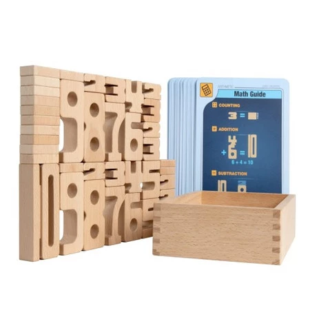 Zestaw SumBlox Mini to bogactwo elementów zapewniających mnóstwo możliwości nauki i zabawy. W eleganckiej, drewnianej skrzynce do przechowywania znajdziecie: