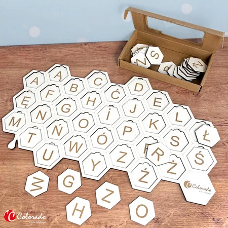 Drewniana układanka z alfabetem - plaster miodu