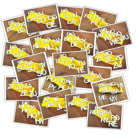 - KOMPLET SYLAB OTWARTYCH 3D PLUS SAMOGŁOSKIZawiera 133 elementy:– 12 zestawów sylab prymarnych:PA PO PU PÓ PE PY PIMA MO MU MÓ ME MY MIFA FO FU FÓ FE FY FIBA BO BU BÓ BE BY BIWA WO WU WÓ WE WY WIKA KO KU KÓ KE KY KIDA DO DU DÓ DE DY DIGA GO GU GÓ GY GIZA Z