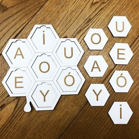 Czytaj więcejPomoc do nauki czytania metodą krakowską Plaster Miodu zawiera 7 samogłosek, które trzeba dopasować w odpowiednie miejsca.