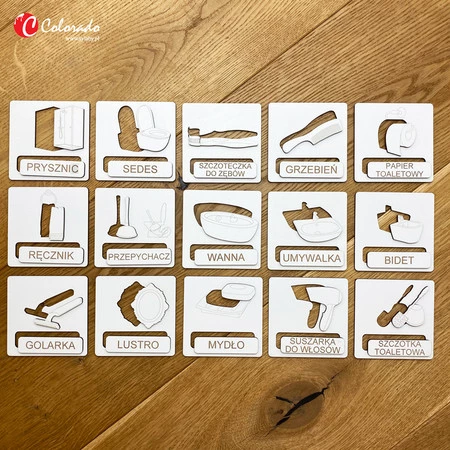 UKŁADANKA TEMATYCZNA – ŁAZIENKA Produkt edukacyjny do nauki języka polskiego.Wykonany z płyty HDF; grawerowany laserowo.Zawiera 45 elementów (15 tabliczek z wyciętymi kształtami, 15 kształtów, 15 nazw kształtów).Zastosowanie:– nauka słownictwa,– stymulacja rozwoju mózgu,– nauka logicznego myślenia,– ćwiczenie chwytności i precyzyjności ruchów,– ćwiczenie koncentracji i widzenia przestrzennego,– rozpoznawanie i dopasowywanie kształtów,– ćwiczenie pamięci,– rozwój myślenia przyczynowo-skutkowego,Potrzebujesz pomocy? Masz pytania?Zadaj pytanie a my odpowiemy niezwłocznie, najciekawsze pytania i odpowiedzi publikując dla innych.