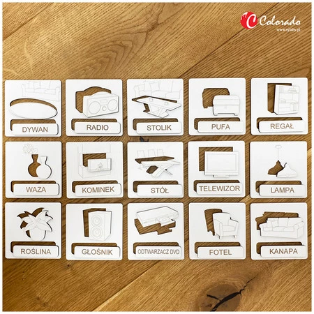 UKŁADANKA TEMATYCZNA – SALON Produkt edukacyjny do nauki języka polskiego.Wykonany z płyty HDF; grawerowany laserowo.Zawiera 45 elementów (15 tabliczek z wyciętymi kształtami, 15 kształtów, 15 nazw kształtów).Zastosowanie:– nauka słownictwa,– stymulacja rozwoju mózgu,– nauka logicznego myślenia,– ćwiczenie chwytności i precyzyjności ruchów,– ćwiczenie koncentracji i widzenia przestrzennego,– rozpoznawanie i dopasowywanie kształtów,– ćwiczenie pamięci,– rozwój myślenia przyczynowo-skutkowego,Potrzebujesz pomocy? Masz pytania?Zadaj pytanie a my odpowiemy niezwłocznie, najciekawsze pytania i odpowiedzi publikując dla innych.