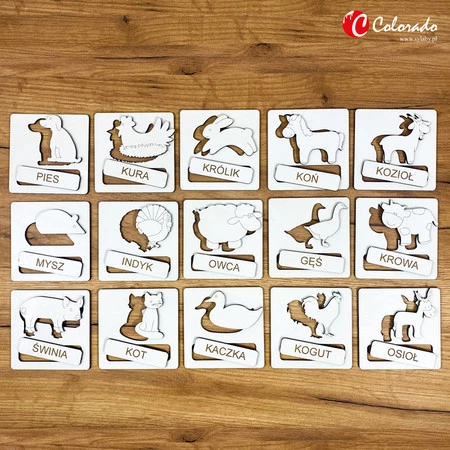 UKŁADANKA TEMATYCZNA – ZWIERZĘTA NA WSI Produkt edukacyjny do nauki języka polskiego.Wykonany z płyty HDF; grawerowany laserowo.Zawiera 45 elementów (15 tabliczek z wyciętymi kształtami, 15 kształtów, 15 nazw kształtów).Zastosowanie:– nauka słownictwa,– stymulacja rozwoju mózgu,– nauka logicznego myślenia,– ćwiczenie chwytności i precyzyjności ruchów,– ćwiczenie koncentracji i widzenia przestrzennego,– rozpoznawanie i dopasowywanie kształtów,– ćwiczenie pamięci,– rozwój myślenia przyczynowo-skutkowego,Potrzebujesz pomocy? Masz pytania?Zadaj pytanie a my odpowiemy niezwłocznie, najciekawsze pytania i odpowiedzi publikując dla innych.