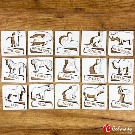 UKŁADANKA TEMATYCZNA – ZWIERZĘTA W ZOO Produkt edukacyjny do nauki języka polskiego.Wykonany z płyty HDF; grawerowany laserowo.Zawiera 45 elementów (15 tabliczek z wyciętymi kształtami, 15 kształtów, 15 nazw kształtów).Zastosowanie:– nauka słownictwa,– stymulacja rozwoju mózgu,– nauka logicznego myślenia,– ćwiczenie chwytności i precyzyjności ruchów,– ćwiczenie koncentracji i widzenia przestrzennego,– rozpoznawanie i dopasowywanie kształtów,– ćwiczenie pamięci,– rozwój myślenia przyczynowo-skutkowego,Potrzebujesz pomocy? Masz pytania?Zadaj pytanie a my odpowiemy niezwłocznie, najciekawsze pytania i odpowiedzi publikując dla innych.