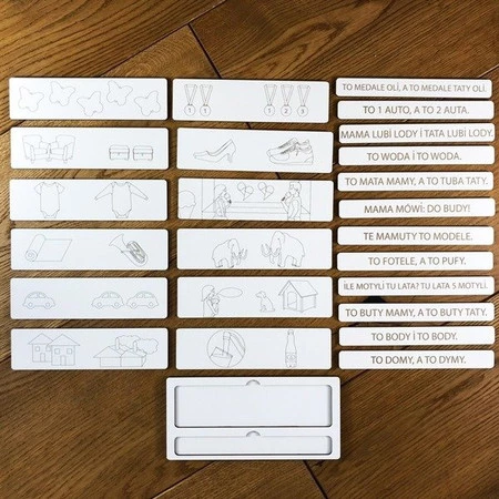 Układanka – zdania z sylab prymarnychPrymarne zestawy sylabowe służą jako pomoc do nauki czytania metodą symultaniczno-sekwencyjną dla dzieci powyżej trzeciego roku życia. Układanka zawiera 25 części, w tym 12 płytek z obrazkami, 12 płytek ze zdaniami oraz podstawę bazową do układania. Zestaw wykonano z płyty HDF o grubości 3mm. Elementy opakowane są w kartonowe pudełko.Prymarne zestawy sylabowe – nauka czytaniaZdania na płytkach utworzone zostały z sylab prymarnych otwartych z wykorzystaniem paradygmatów B, D, F, L, M, P, T oraz W wraz z dodanymi do nich samogłoskami. Układanka może być pomocna jako jedna z pierwszych czytanek oraz do zabaw edukacyjnych i logopedycznych.Potrzebujesz pomocy? Masz pytania?Zadaj pytanie a my odpowiemy niezwłocznie, najciekawsze pytania i odpowiedzi publikując dla innych.