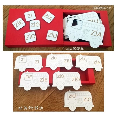 Bardzo fajna pomoc i zabawka! Jako układanka, zabawka pobudzająca wyobraźnię i pomoc logopedyczna. Dobrze wykonana, przyjemna w użyciu. Jedyna uwaga jest taka, że po dołożeniu elementu -układanki nie można ambulansu podnieść, bo "krzyż" wypada. Zakleiłam z tyłu kartką w 3 minuty wszystkie wozy i teraz jest idealnie.