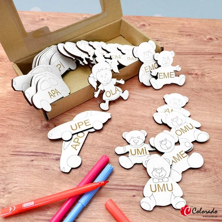 Początkowo dziecko odkrywa imiona zabawek zbudowane z tej samej samogłoski, takie jak ALA, OMO, EPE. To doskonały sposób na oswojenie się z prostą strukturą słów. Następnie, zabawa staje się jeszcze ciekawsza, gdy pojawiają się imiona z różnymi samogłoskami, np. IPU, AME, UMI.