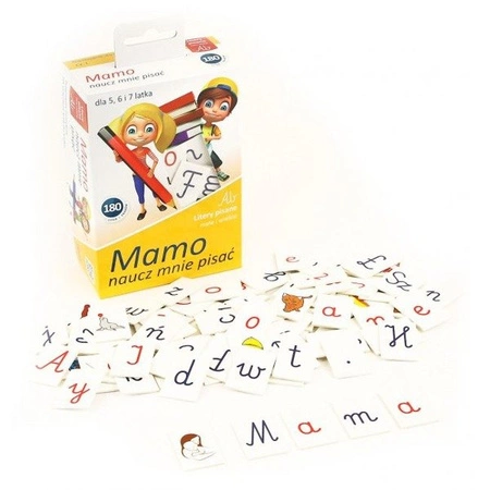 - Zestaw do nauki liter pisanych - tych, które dziecko zapisuje w zeszycie.