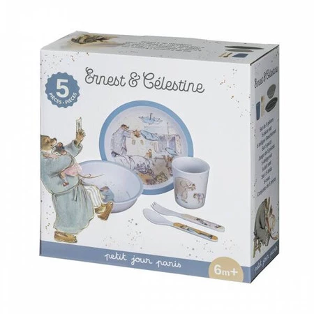 Zestaw naczyń i sztućców dla dziecka, 5 el., Ernest i Celestyna | Petit Jour Paris®