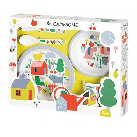 Zestaw naczyń i sztućców dla dziecka, 5 el., Wiejska Sielanka | Maison Petit Jour®