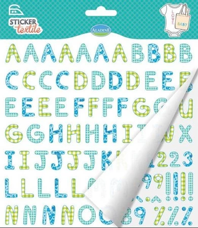 - Naprasowywanka Alfabet Niebieski na tkaniny. 2 arkusze 20x19,5 cm.