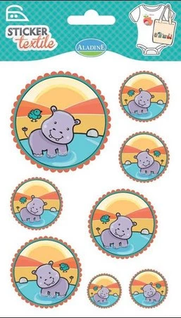 - Naprasowywanka Hipcio na tkaniny. 1 arkusz 17x12 cm.