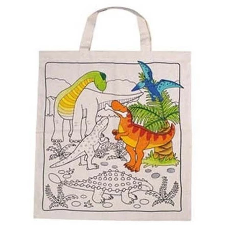 Bawełniana torba z dinozaurami do pomalowania kredkami do tkanin.