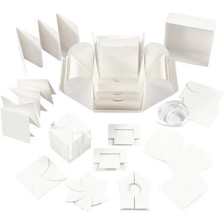 - Zestaw eksplodujące pudełko DIY w kolorze białym do samodzielnego ozdobienia i uzupełnienia.
