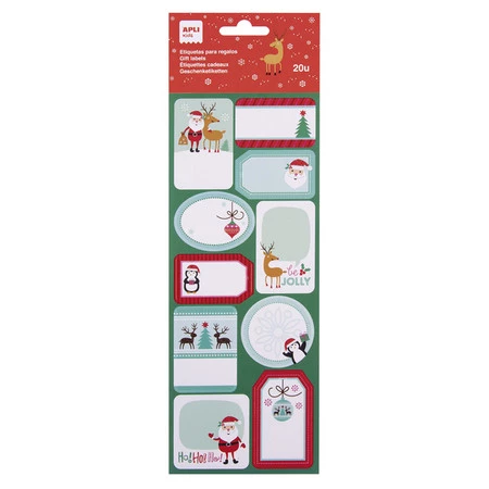Etykiety samoprzylepne na prezenty o tematyce świątecznej. Opakowanie zawiera 2 arkusze z 20 naklejkami w różnych rozmiarach. Wysokiej jakości trwałe etykiety samoprzylepne idealnie sprawdzą się do oznaczania i identyfikacji prezentów, pisania dedykacji itp.