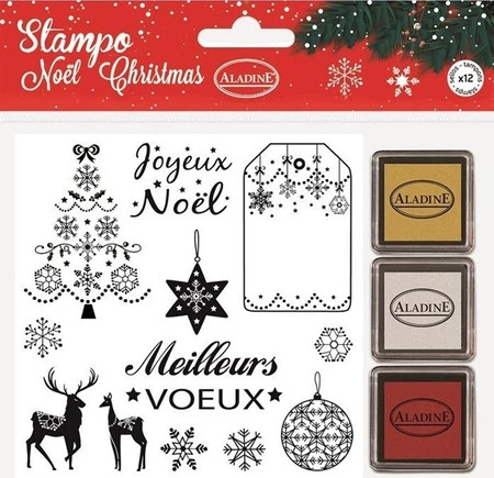 - Stempelki Bożonarodzeniowe Klasyczne. Zestaw 12 gumowych stempelków z piankowymi rączkami i 3 gąbeczek z tuszem do papieru.